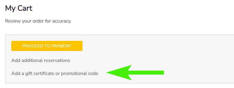 A: During the registration process, when you're reviewing your cart, click the link that reads "Add a gift certificate or promotional code" to apply your unique promotion code.